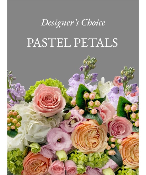 Allow our design team to create a one-of-a-kind arrangement for you, using the freshest flowers in a pastel color combination accented with assorted green foliage.