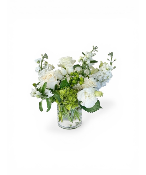 Designed in a clear glass vase to showcase its airy stems and organic structure, this arrangement feels both refined and relaxed. The mix of crisp whites and lively greens brings a sense of renewal, making it perfect for everyday beauty, thoughtful gifting, or brightening any space with a touch of nature’s calm.